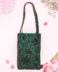This intricate Rectangular Design Mobile Pouch with Applique leaf work arranged in corners , with sequins, and Kathdana and Bead work in a stunning Green Colour! This is perfect to keep any important IDs, money and your mobile!