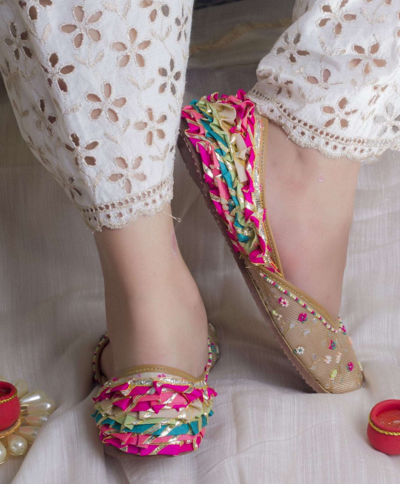 A celebratory product that will make you fall in love with the jutti as soon as you lay eyes on it. Pair with your favorite Indian outfit or amp up your westerns, this multi-color jutti is pair that can never go wrong in any combination or look.